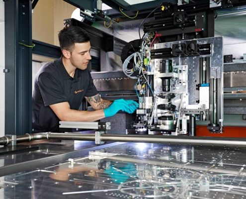 Präzision im Mikro- und Nanobereich erfordert exakte Steuerung. Unsere Automatisierungs-ingenieure stellen sicher, dass sich die Maschinen mit höchster Genauigkeit bewegen und sich nahtlos in die Produktionsprozesse unserer Kunden einfügen. Sie programmieren präzise Steuerungen, die genau festlegen, wie Laserstrahlen geführt oder wie verschiedene Bearbeitungsteile exakt positioniert werden. So laufen unsere Anlagen effizient und zuverlässig.