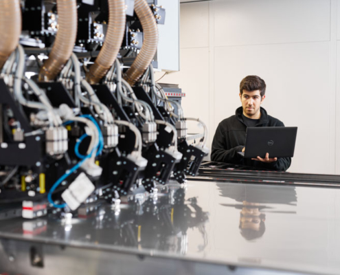 Der Bereich Service und Inbetriebnahme sorgt dafür, dass unsere Maschinen weltweit reibungslos und effizient laufen. Unsere Kollegen übernehmen die Installation und Inbetriebnahme der Anlagen vor Ort, stellen sicher, dass alle Systeme optimal funktionieren und schulen die Anwender. Darüber hinaus kümmern sie sich um die langfristige Betreuung der Kunden, bieten Wartungsdienste an, beheben Störungen und nehmen nötige Optimierungen vor. Ihre Arbeit stellt sicher, dass unsere Maschinen zuverlässig laufen und effizient in Betrieb bleiben.
