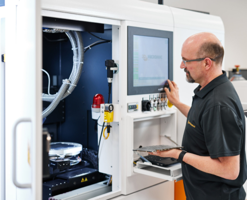 Bevor eine Maschine verkauft wird, wollen Kunden sehen, was möglich ist – hier kommt unser Applikationsteam ins Spiel. Unsere Applikationsingenieure führen Machbarkeitsstudien durch und fertigen Musterteile, die zeigen, wie präzise und effizient unsere Technologie arbeitet. So entsteht aus einer Idee ein greifbarer Beweis. Nicht jeder Kunde benötigt eine eigene Maschine – manche nutzen unseren Maschinenpool, um ihre Komponenten direkt bei uns fertigen zu lassen. Im Jobshop bearbeiten wir Kundenaufträge auf unseren Anlagen, vom Einzelteil bis zur Kleinserie.